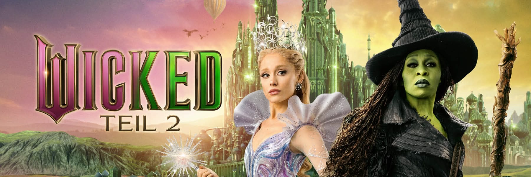 Der zweite Teil von Wicked knüpft unmittelbar an die Ereignisse des ersten Films an und vertieft die komplexe Beziehung zwischen Elphaba und Glinda. Während sich ihre Wege zunehmend trennen, stehen beide vor folgenschweren Entscheidungen, die nicht nur ihr eigenes Schicksal, sondern auch die Zukunft von Oz maßgeblich beeinflussen. In den Hauptrollen glänzen wieder Cynthia Erivo (u.a. The Outsider) als Elphaba und Popstar Ariana Grande als Glinda.