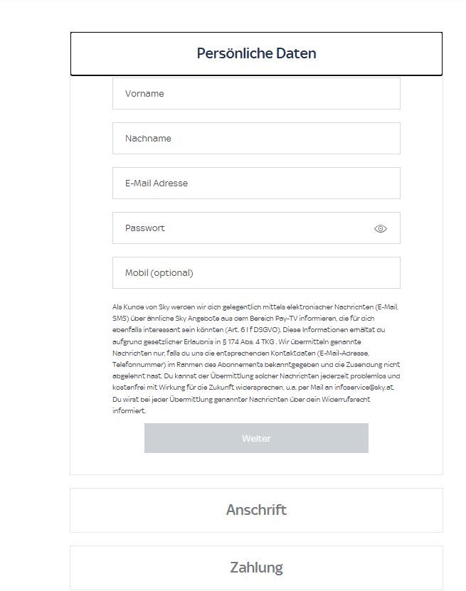 Um Sky X zu sehen, musst du über 18 Jahre alt sein und in Österreich leben. Wir verwenden deine Zahlungskarten-Daten, um dies zu überprüfen und dein Konto zu validieren.