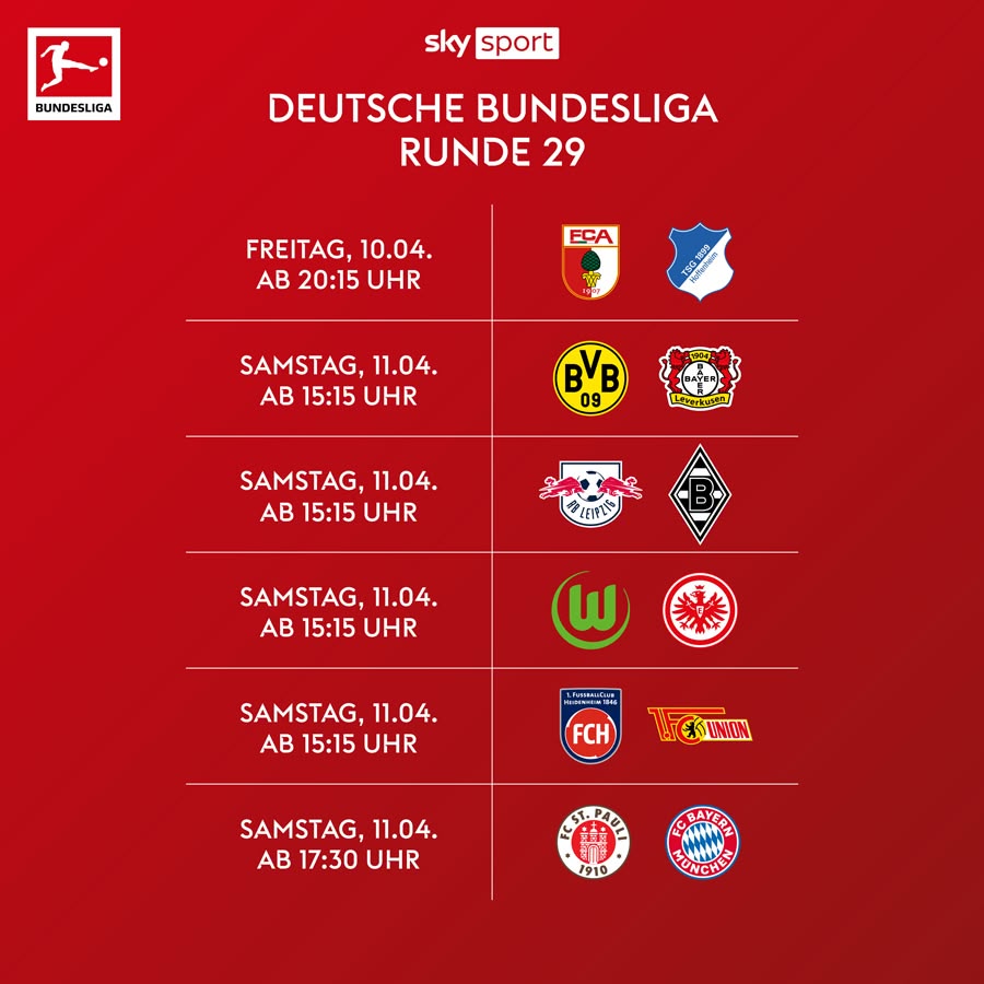 Außerdem zeigt Sky Sport den Bundesliga-Samstag inklusive der Topspiele der Woche sowie die Freitagabendspiele live.