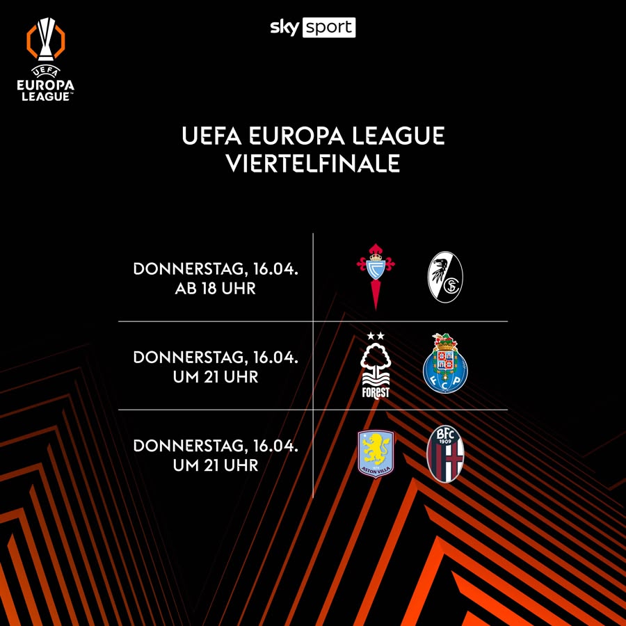 Im Achtelfinale tummeln sich zahlreiche Mannschaften, die eigentlich in der Königsklasse spielen. Das sind unter anderem Aston Villa, der FC Porto, Celta Vigo, Betis Sevilla oder der SC Freiburg.